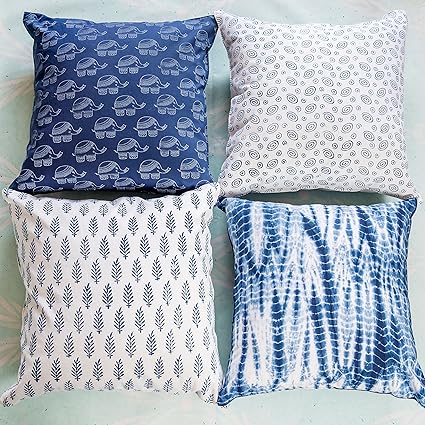 Folkulture Cushion Covers Blue White 18 X 18 Set Of 4